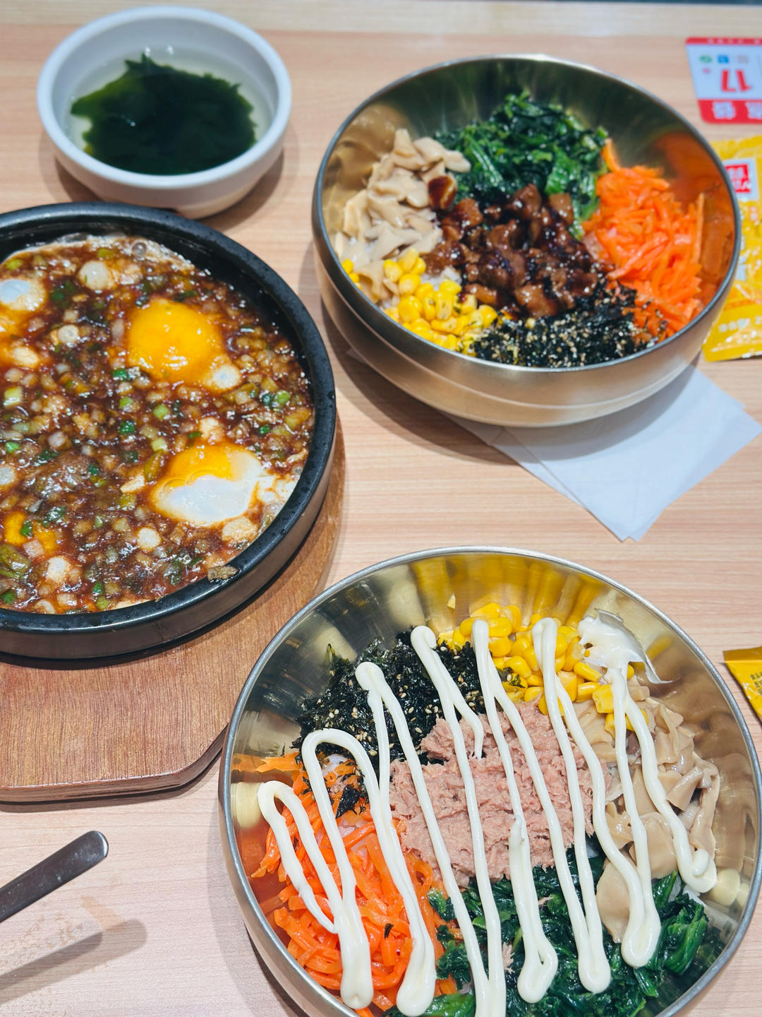 杂粮饭,肉沫炒小瓜,海苔碎