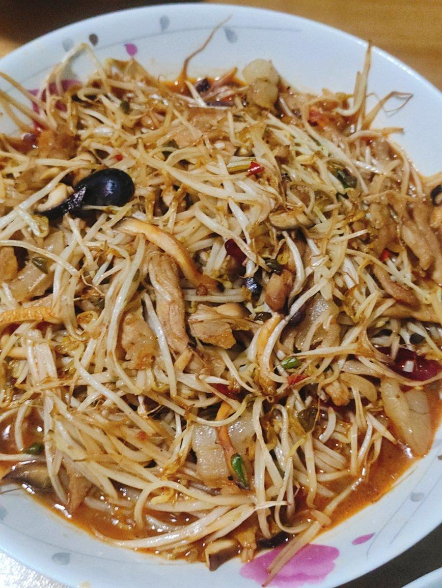肉丝炒豆芽 家熬鲫鱼