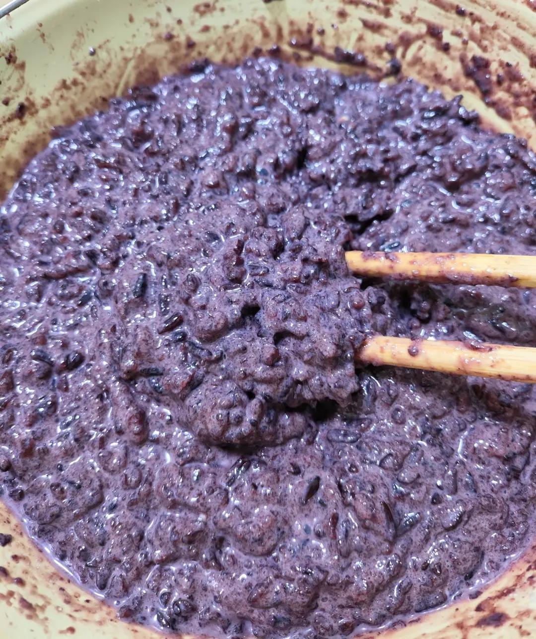 300g紫米加了50g糯米(主要是糯米用不完),淘洗后直接放电饭锅,比平时煮饭用的水稍微多...