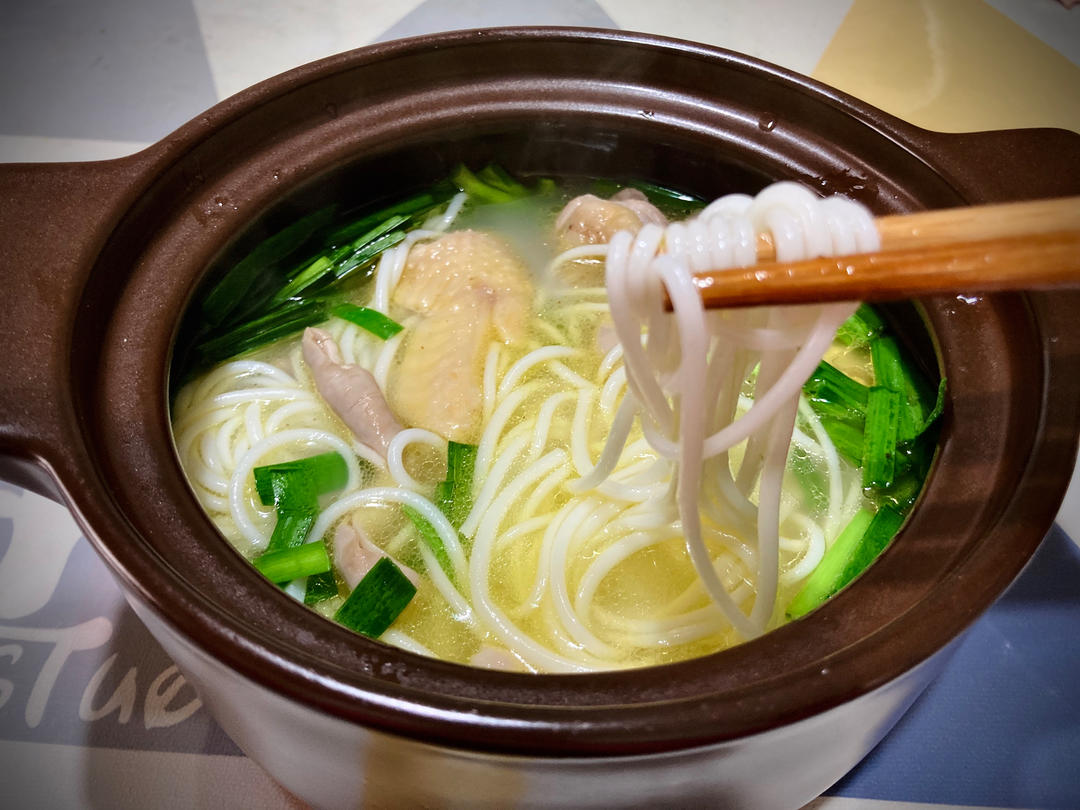 中午一个人在家做的鸡汤米线~