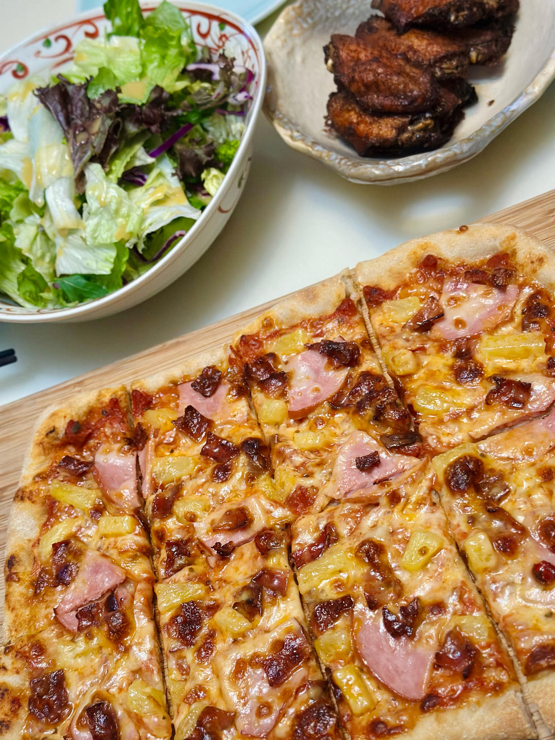 pizza 300度 8分钟 鸡翅 沙拉菜