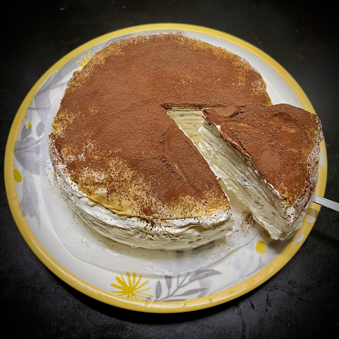 提拉米苏千层初尝试🙈丑到没眼看,但……p3右下角能看得出画了一颗爱心吗🤣