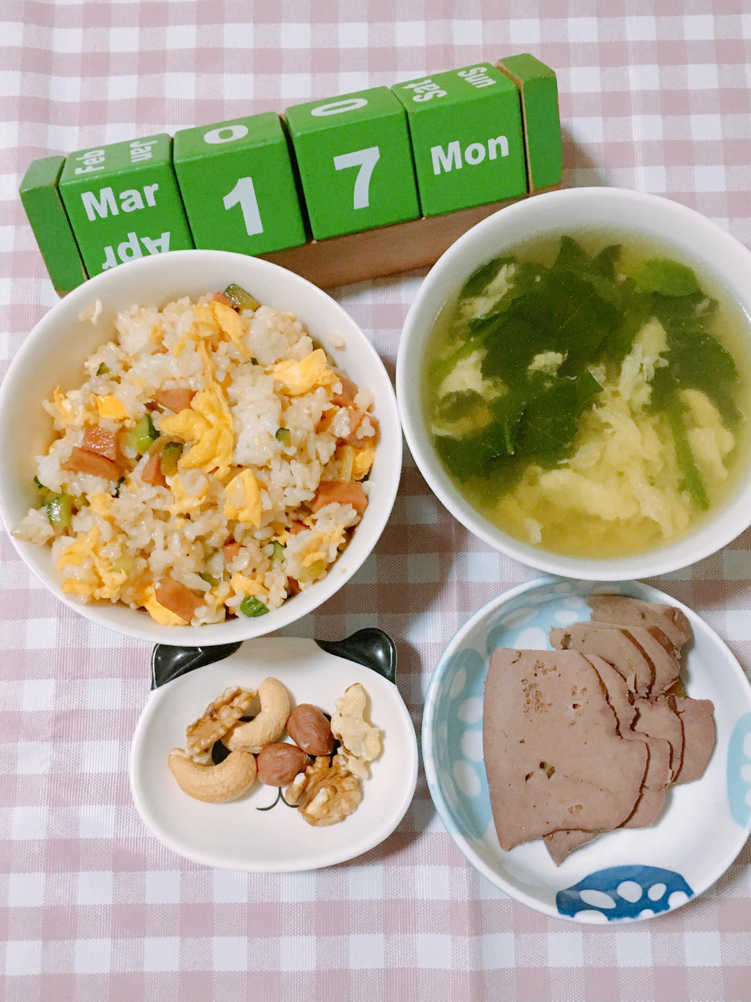 G8S2.W5Day1.缤纷蛋炒饭搭酱猪肝配菠菜鸡蛋汤佐坚果