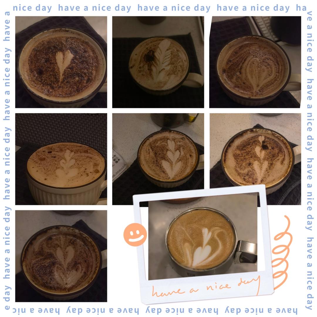 自己花钱买牛奶,必须好好练。打奶泡好多了,但拉花还得好好修炼。这两天...