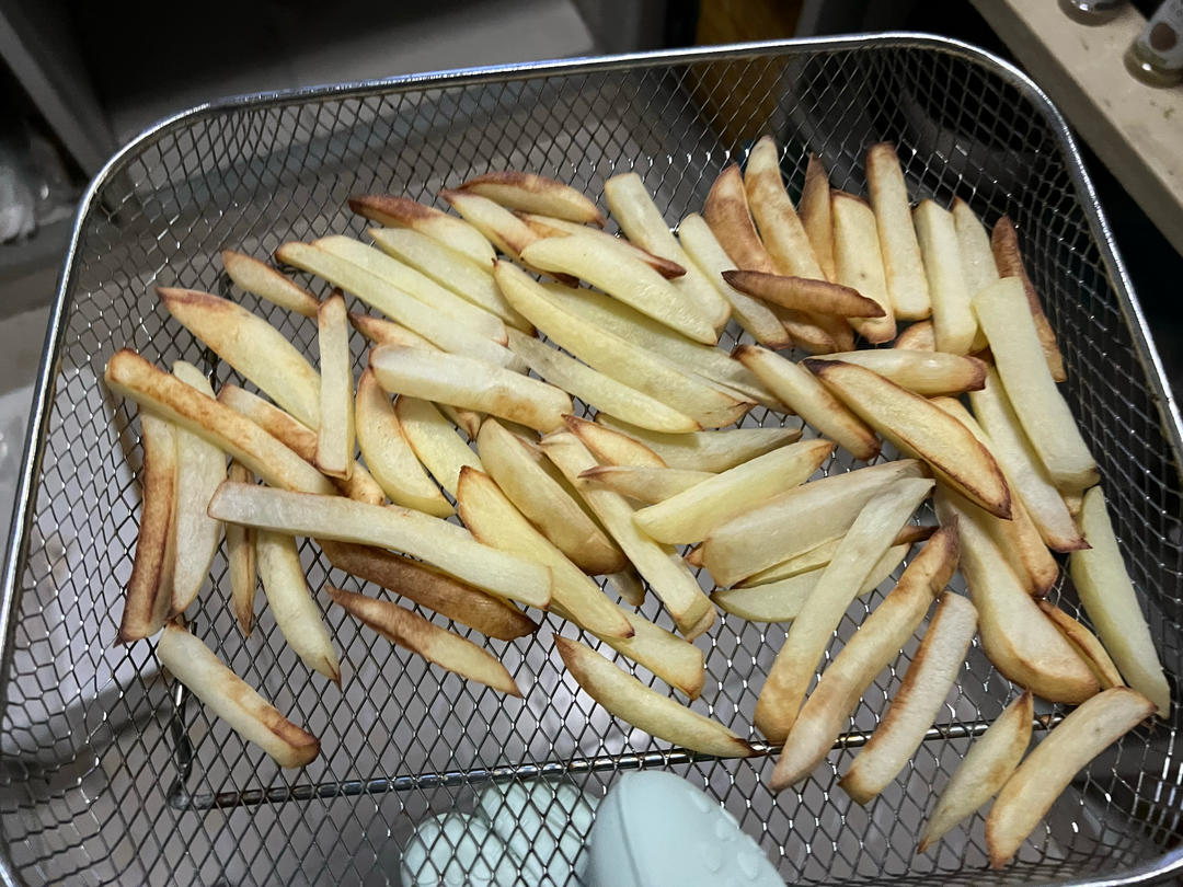 冷冻出来后放入预热后的空气炸锅,开始会解冻滴水,等不滴水的时候拿出来抖...