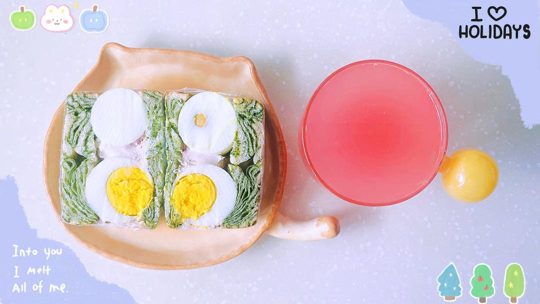 煮蛋干噎酸奶抹茶吐司三明治~🍞(^o^)🍳