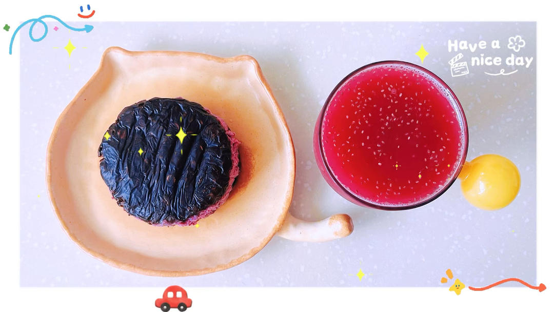 搭配奇亚籽桃莓汁~😋