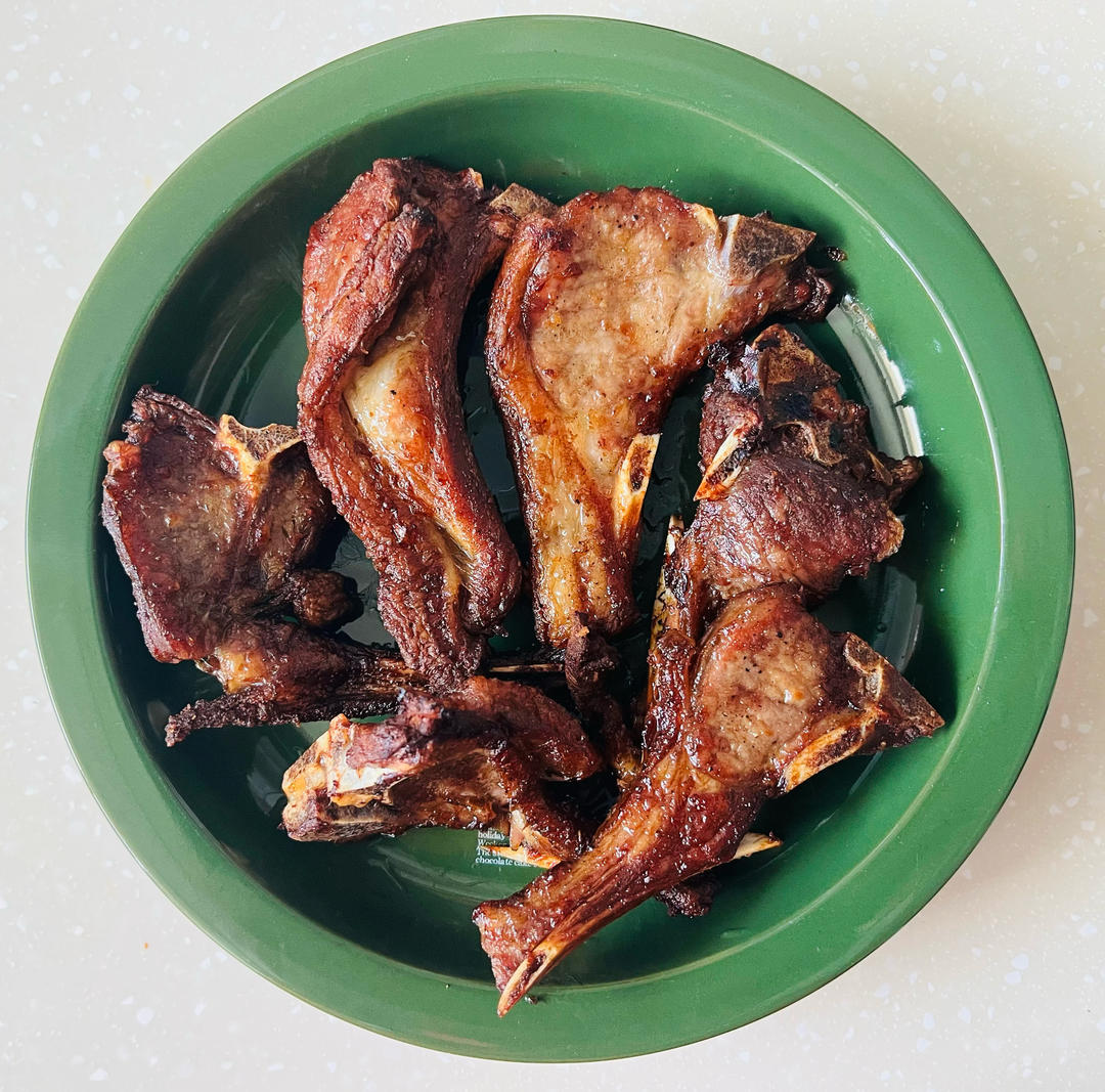 冰箱里找出一盒皓月羊排虽然油有点大还是烤了吧~@