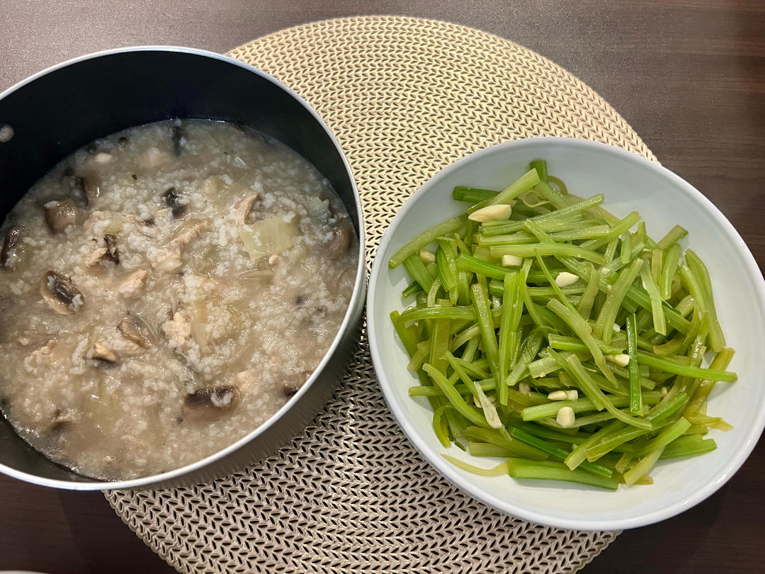鸡肉粥,炒芹菜