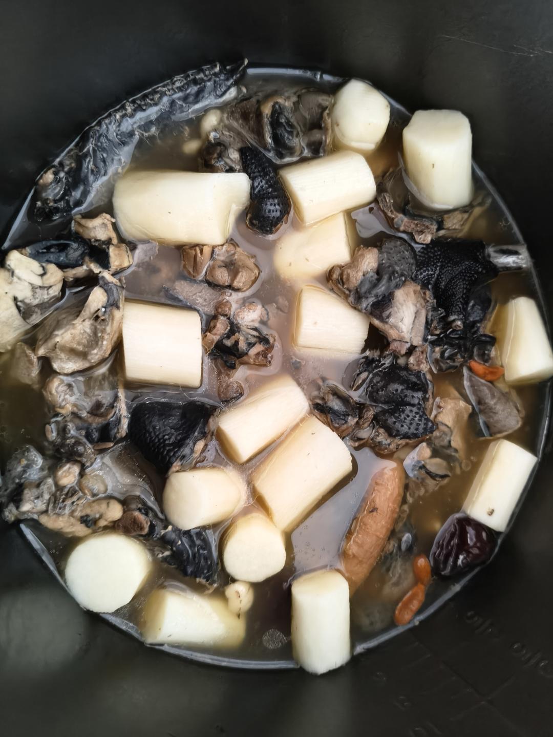 🦐羊肚菌石斛五指毛桃排骨汤,隔水蒸,蒸了两小时,凉拌土豆丝、洋葱炒蛋,卷春饼,黑松露火腿蛋炒饭。#晚餐•2025年5月1...