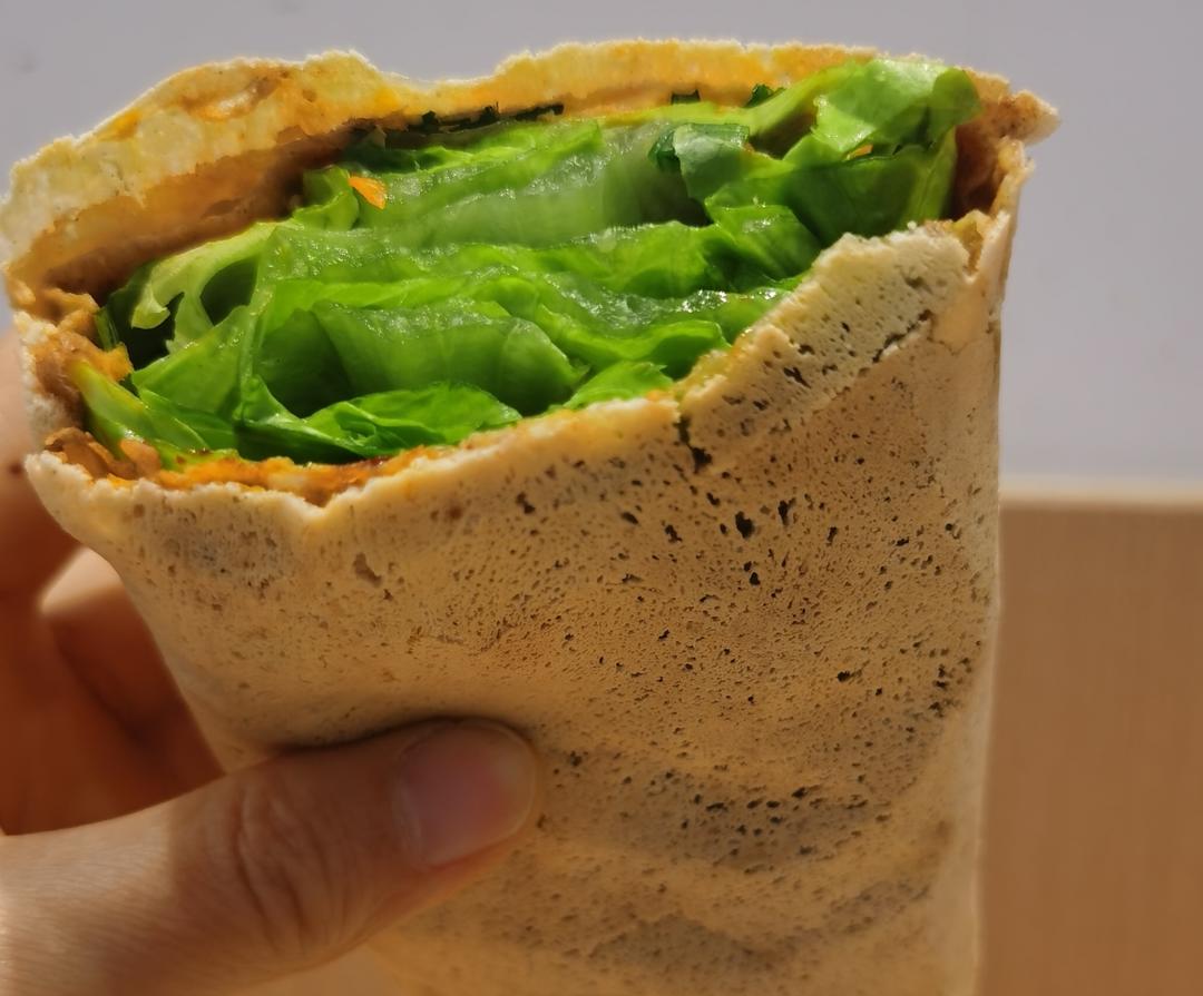 我请老板不要放薄脆,多放两片菜叶。她很乐意。