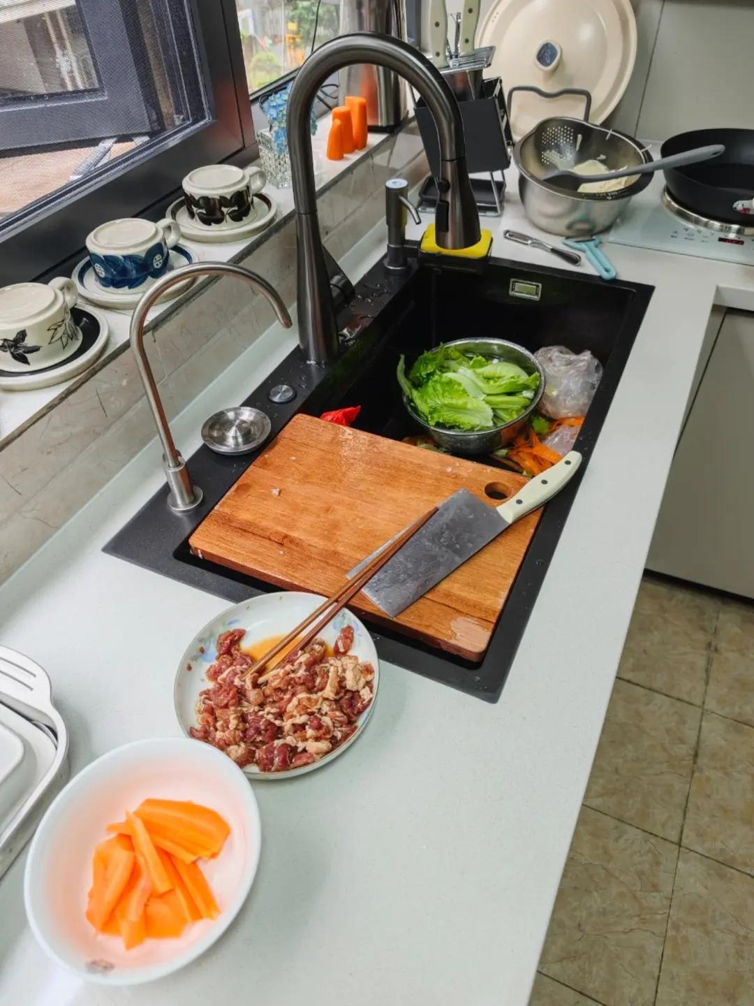 老俩口子的快手午餐。。胡萝卜绿笋炒瘦肉/ 盖浇泡面。2018年从厦门回老家和公婆同住后就没怎么煮过饭的我,现在又要开始(...