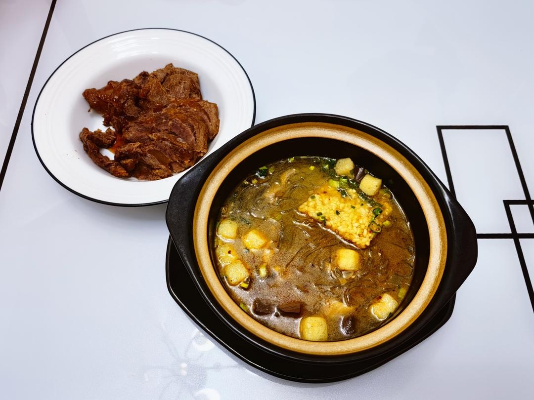 鸭血粉丝汤,卤牛肉!