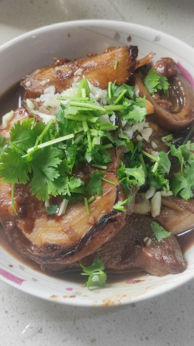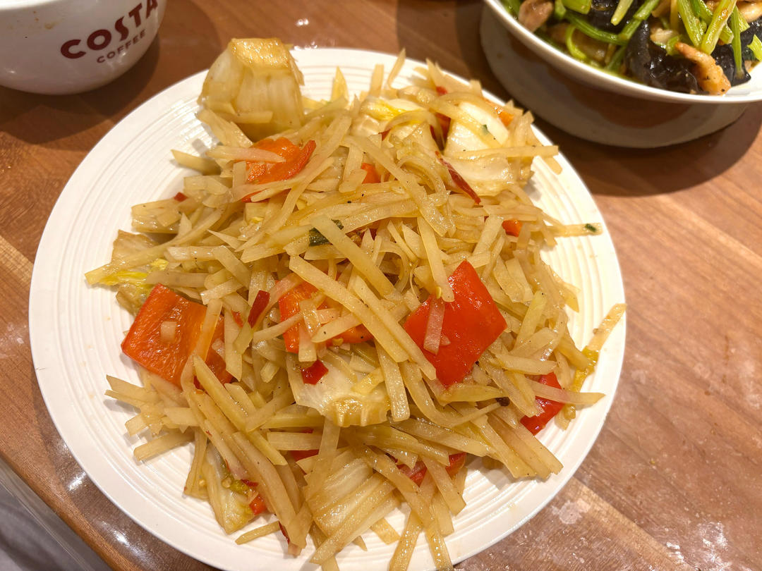 烧茄夹 五花肉炒洋白菜 老虎菜