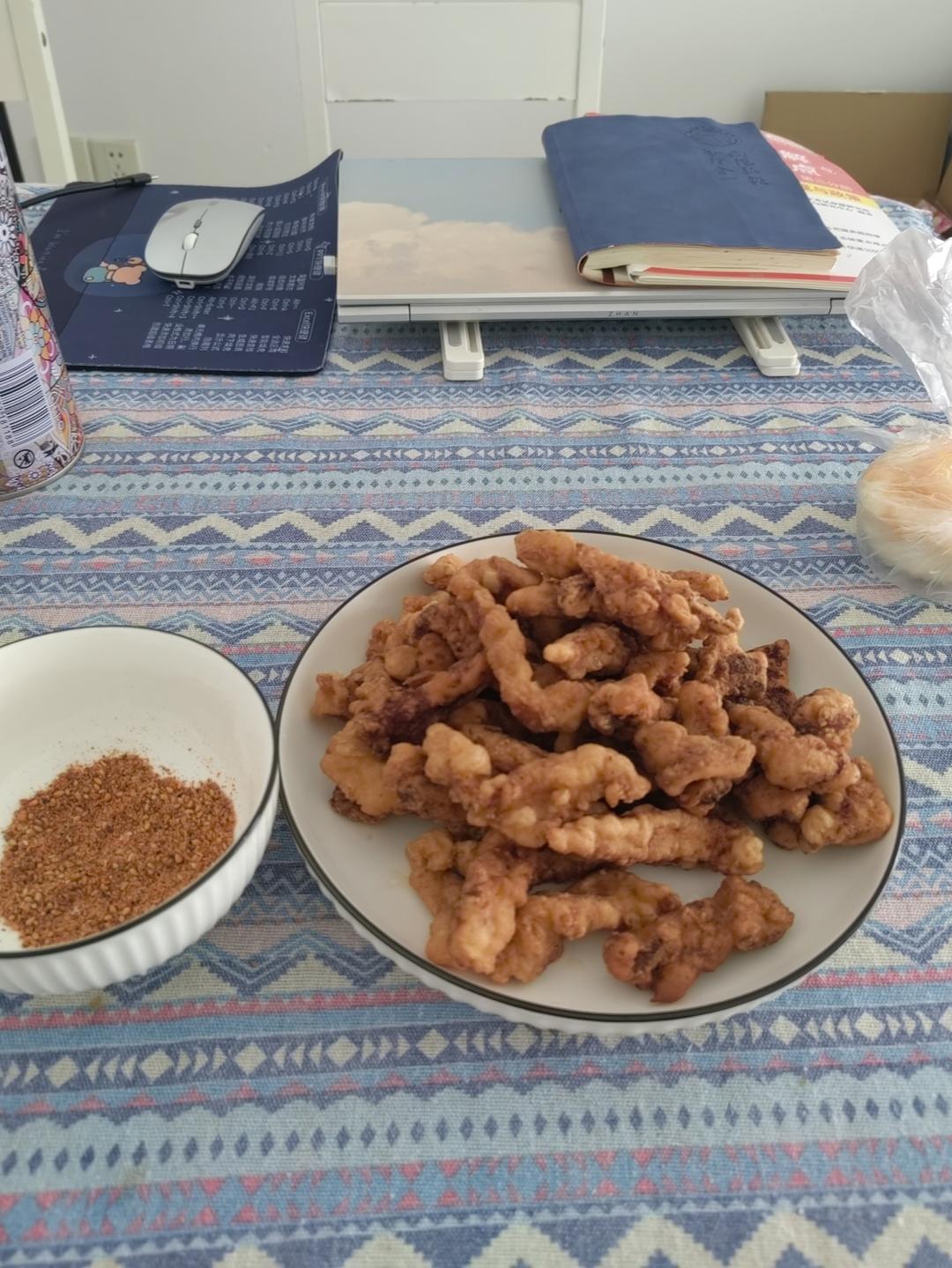 这是我今天晚上自己做的小酥肉,味道还行,不太酥,下次再改进。