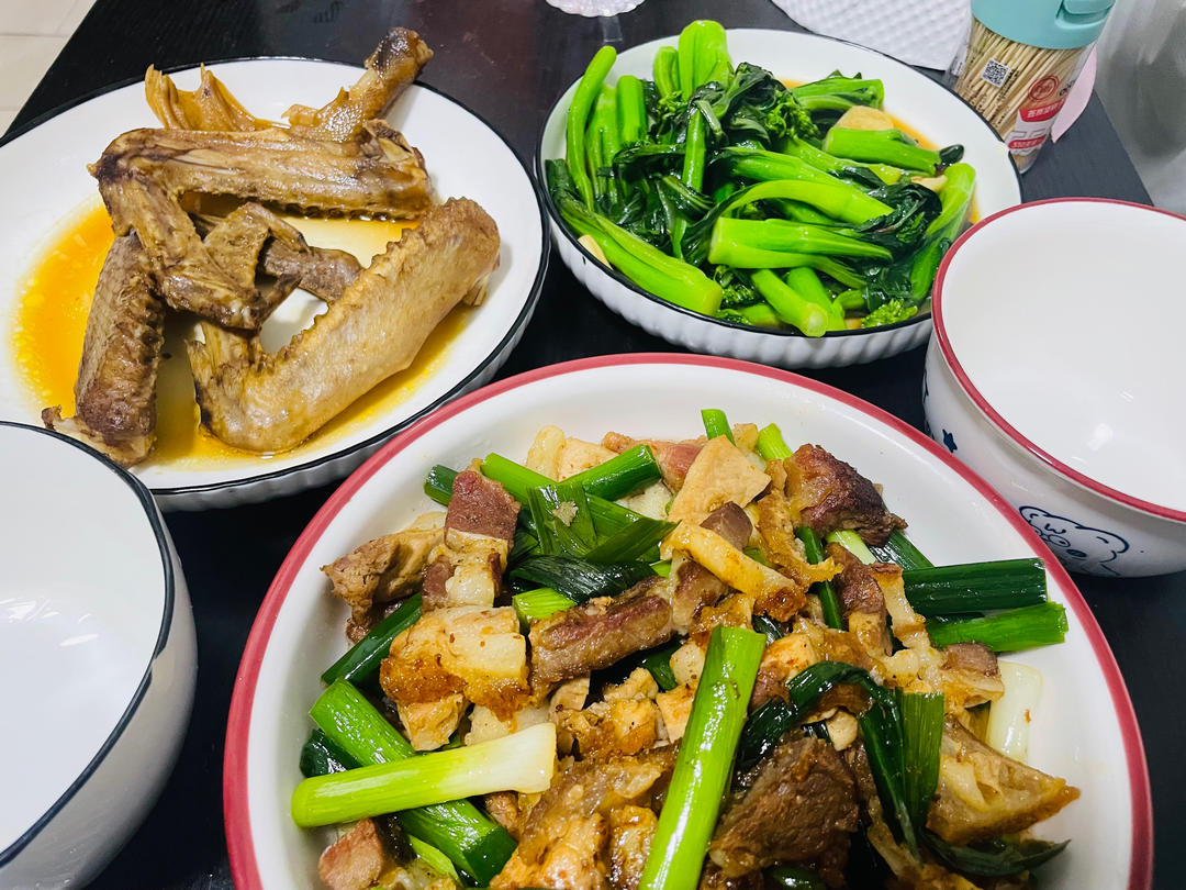 肉沫水豆腐、丝瓜肉片、油爆虾、空心菜、青椒炒油渣。今天又是包粽子的一天,今年圆满收工🎉