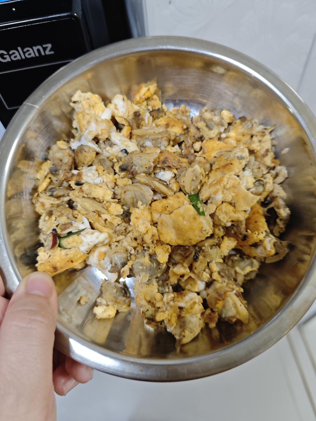 韭菜大头菜粉条鸡蛋 ➕盐耗油五香粉孜然(多)香油(多)