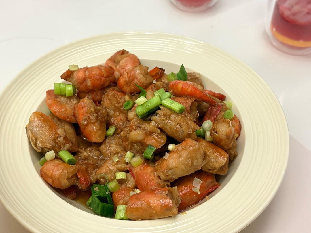 真的巨好吃,我还把虾头先煎了一下,搞点虾油出来最后一起炖,炸蒜很香,加上生蒜有复合的味道...