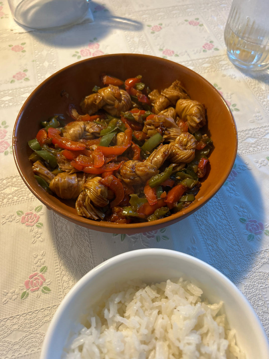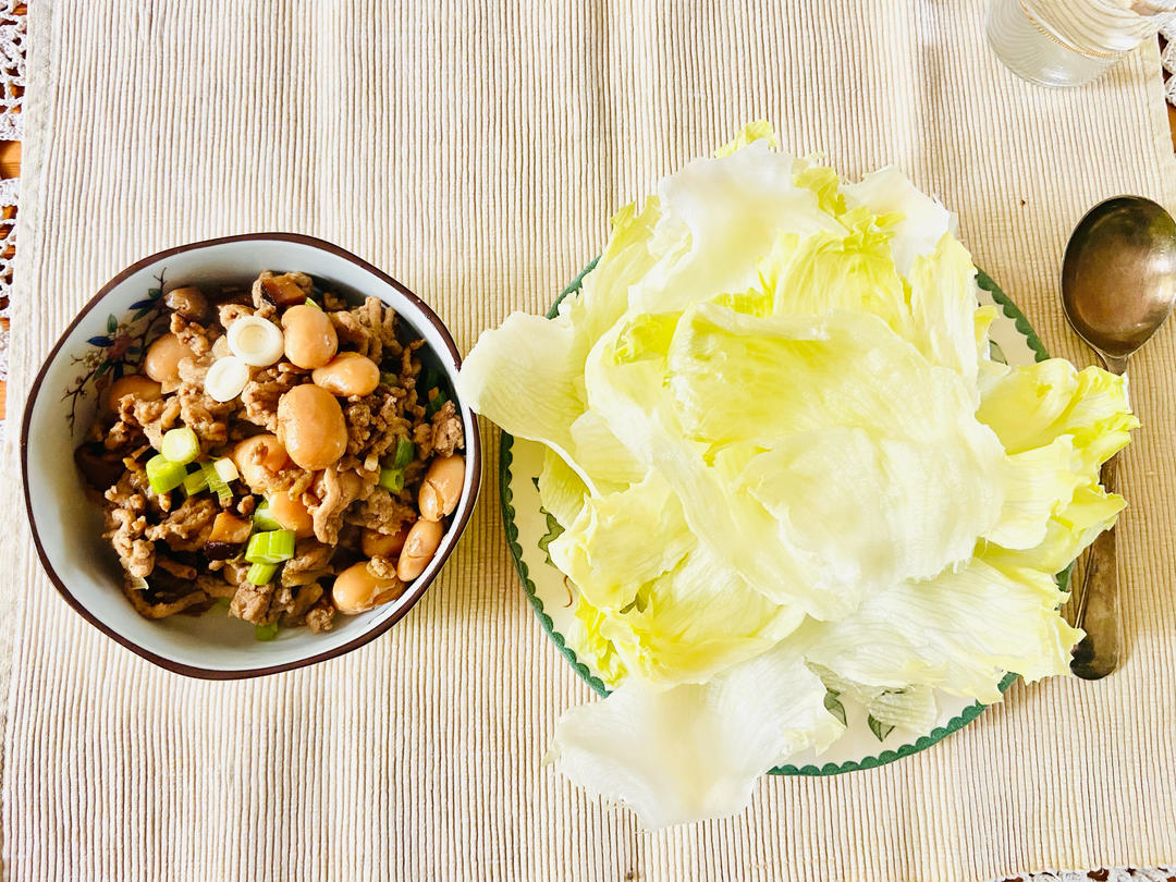 香菇蕓豆肉醬生菜包。做得很淡,不用主食了。