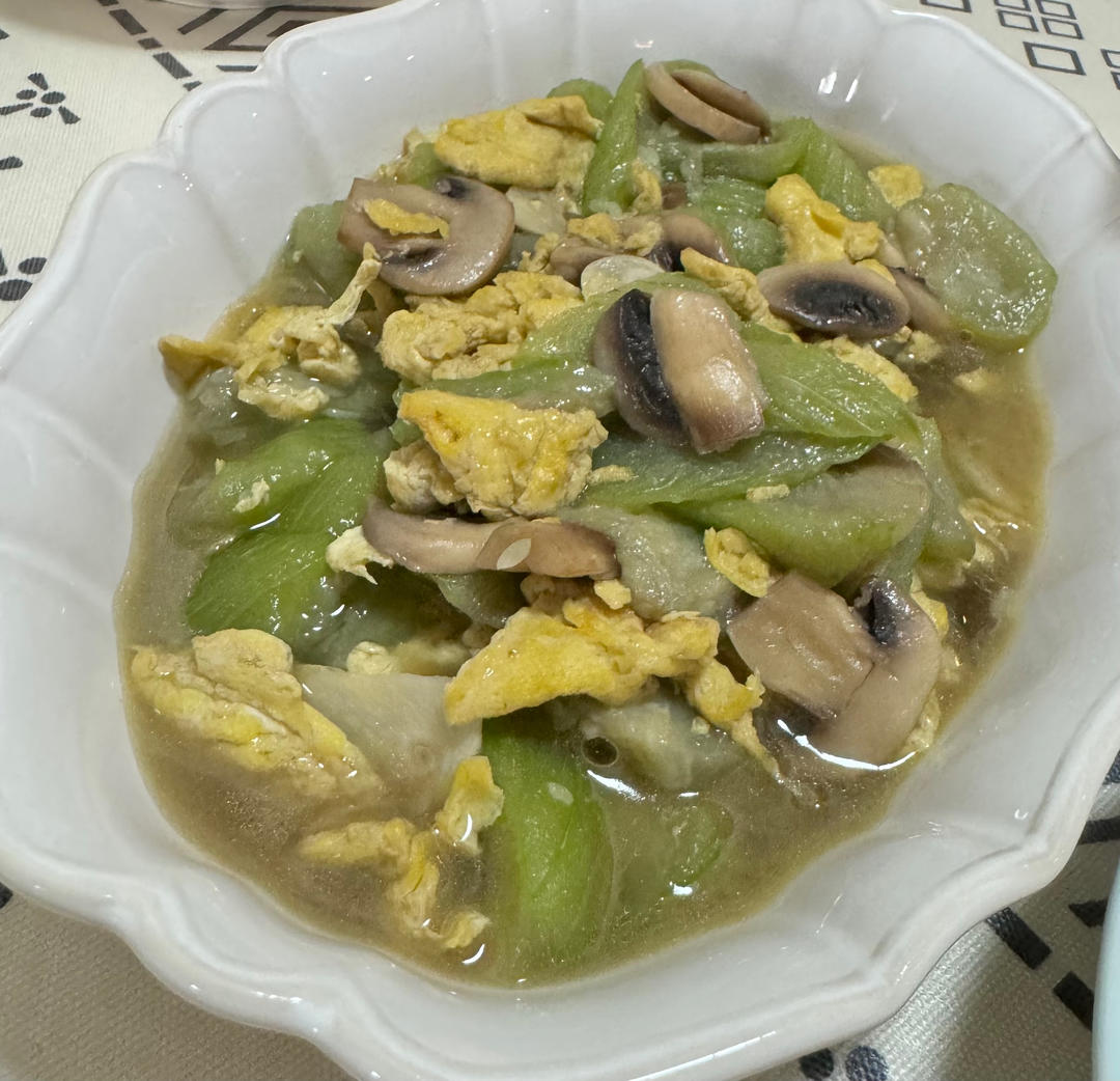 丝瓜口蘑炒鸡蛋 ,电饭煲糖醋排骨年糕