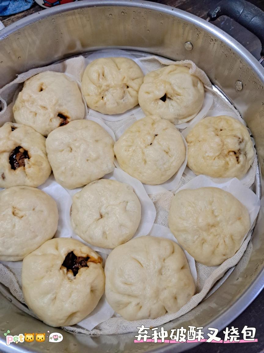 这个点钟才出炉的包子!做了破酥叉烧包,也丢入天然酵母弃种,所以它味道有天然酵母味道😄