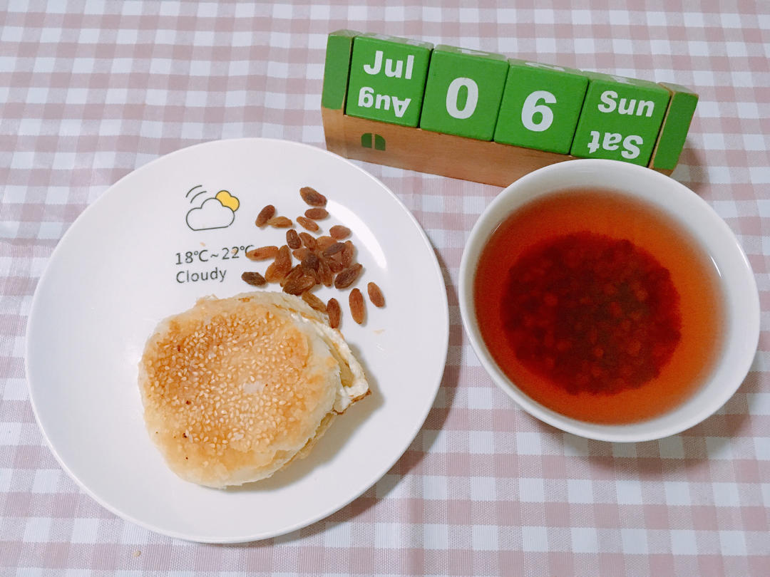 G8S2.W20Day7.芝麻烧饼夹煎蛋🍳配绿豆汤佐葡萄🍇干