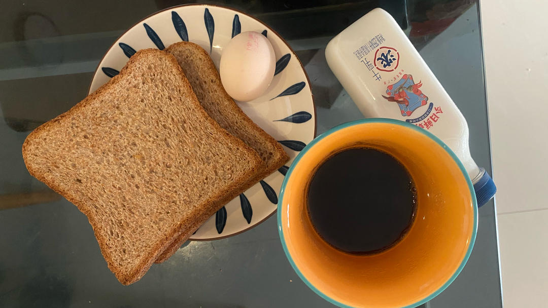 早 牛奶 蛋1面包1咖啡1