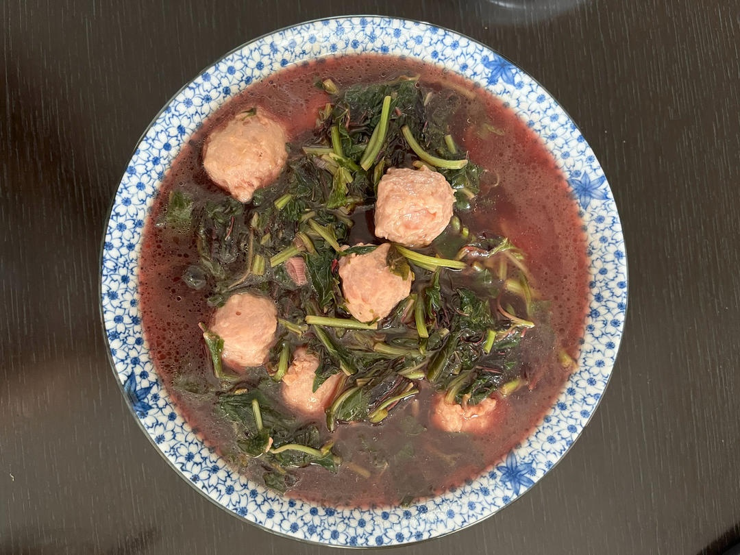🌿今天中午做了红苋菜肉丸汤、凉拌裙带菜、大黄花烩洋葱。本来洋葱要单独炒,大热天儿省点儿...