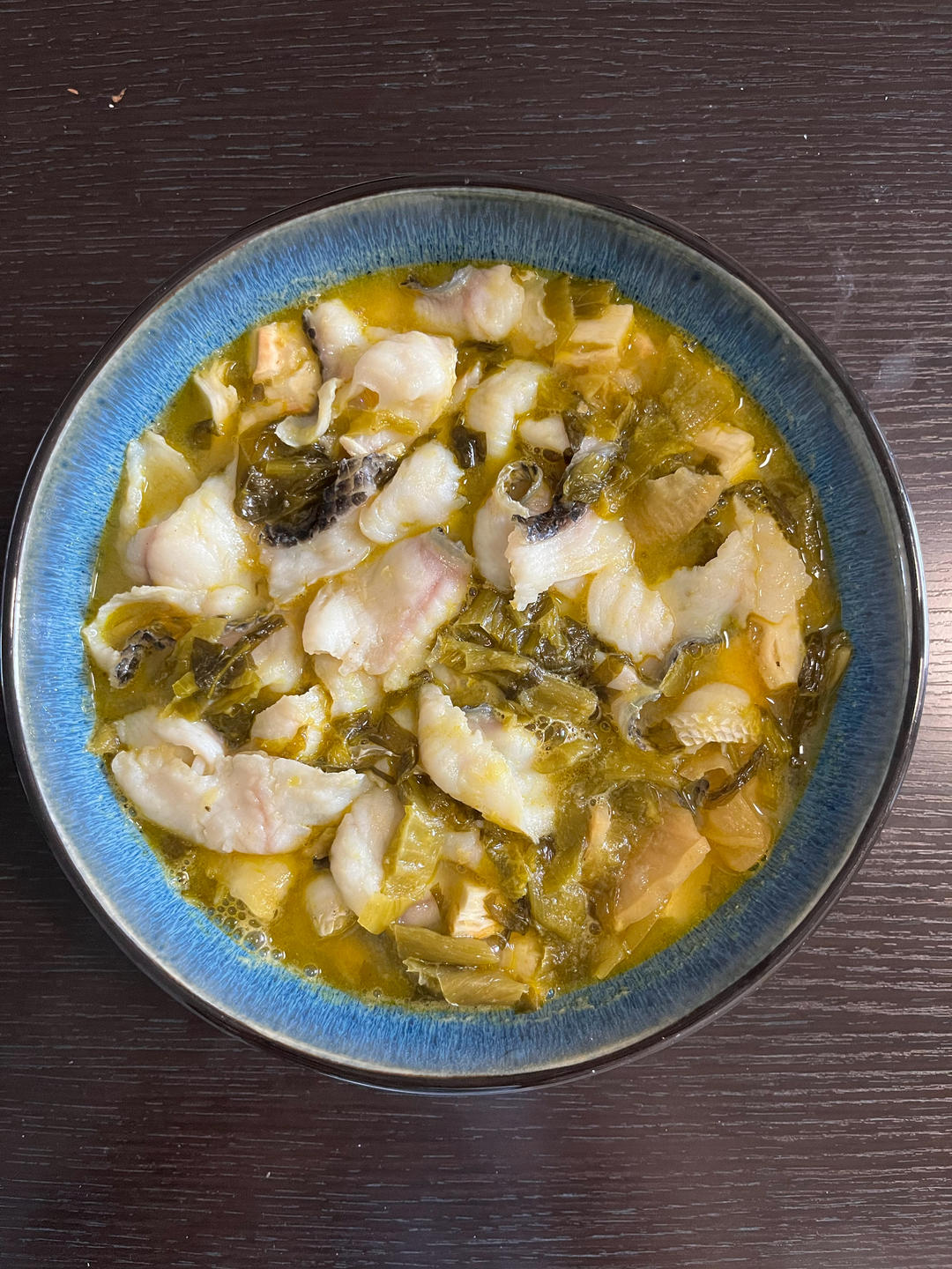 🌿酸菜鱼、肉末炖山豆角、凉拌香菜虾皮儿。鱼片儿鲜嫩味浓,酸菜鱼碗底铺放锅饼片儿,锅饼片...