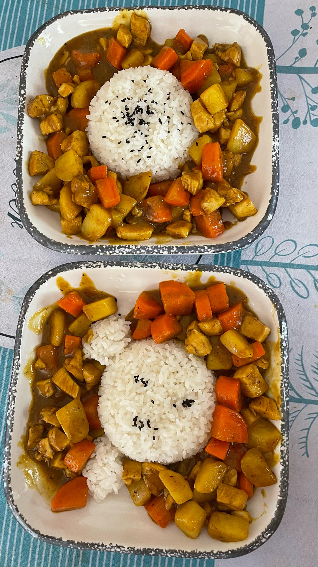 一份小熊猫米饭,一份小太阳米饭,用的鸡胸肉,美味😋
