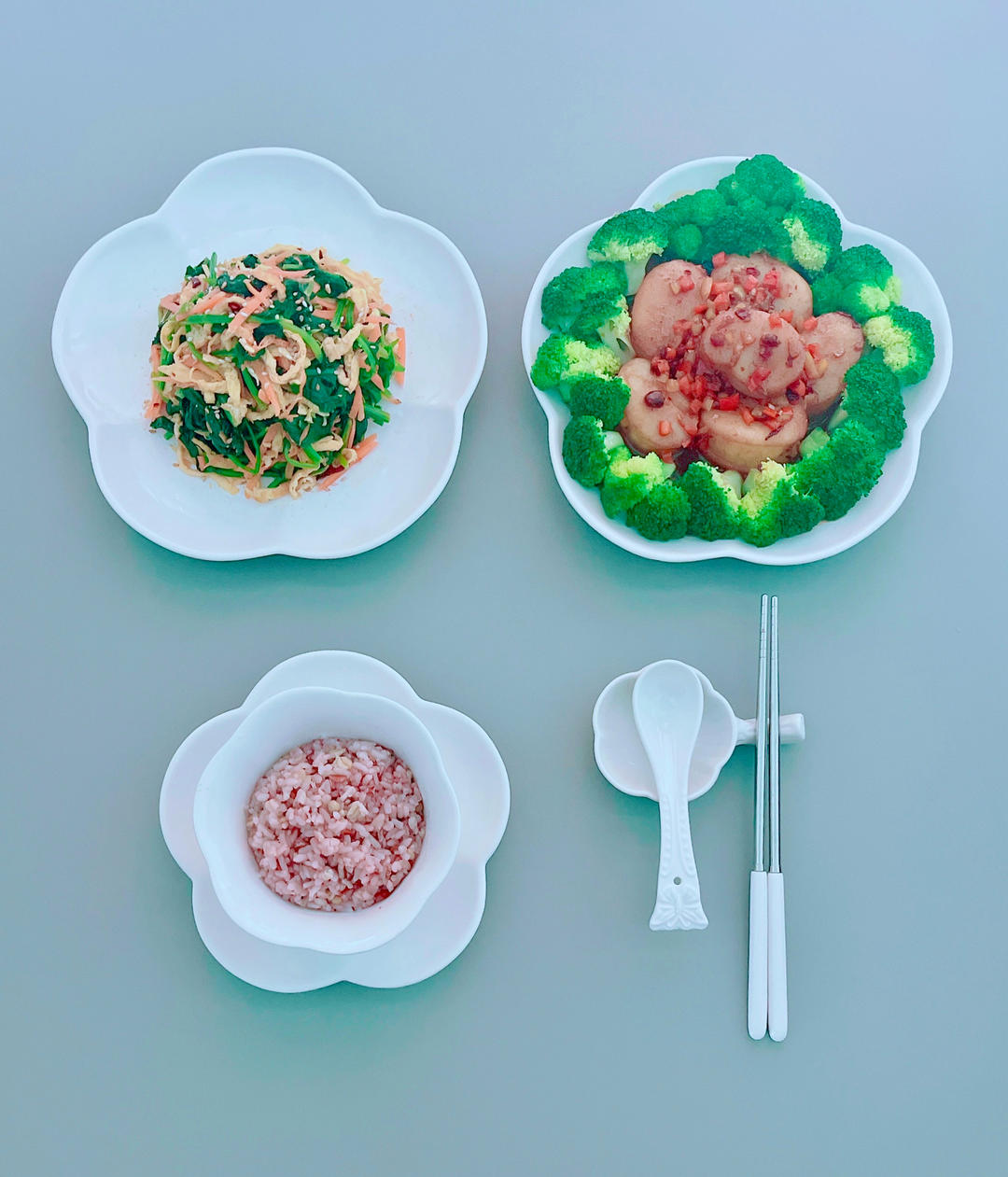 蒜茸西兰花、醋溜土豆丝、糟排骨、味增汤