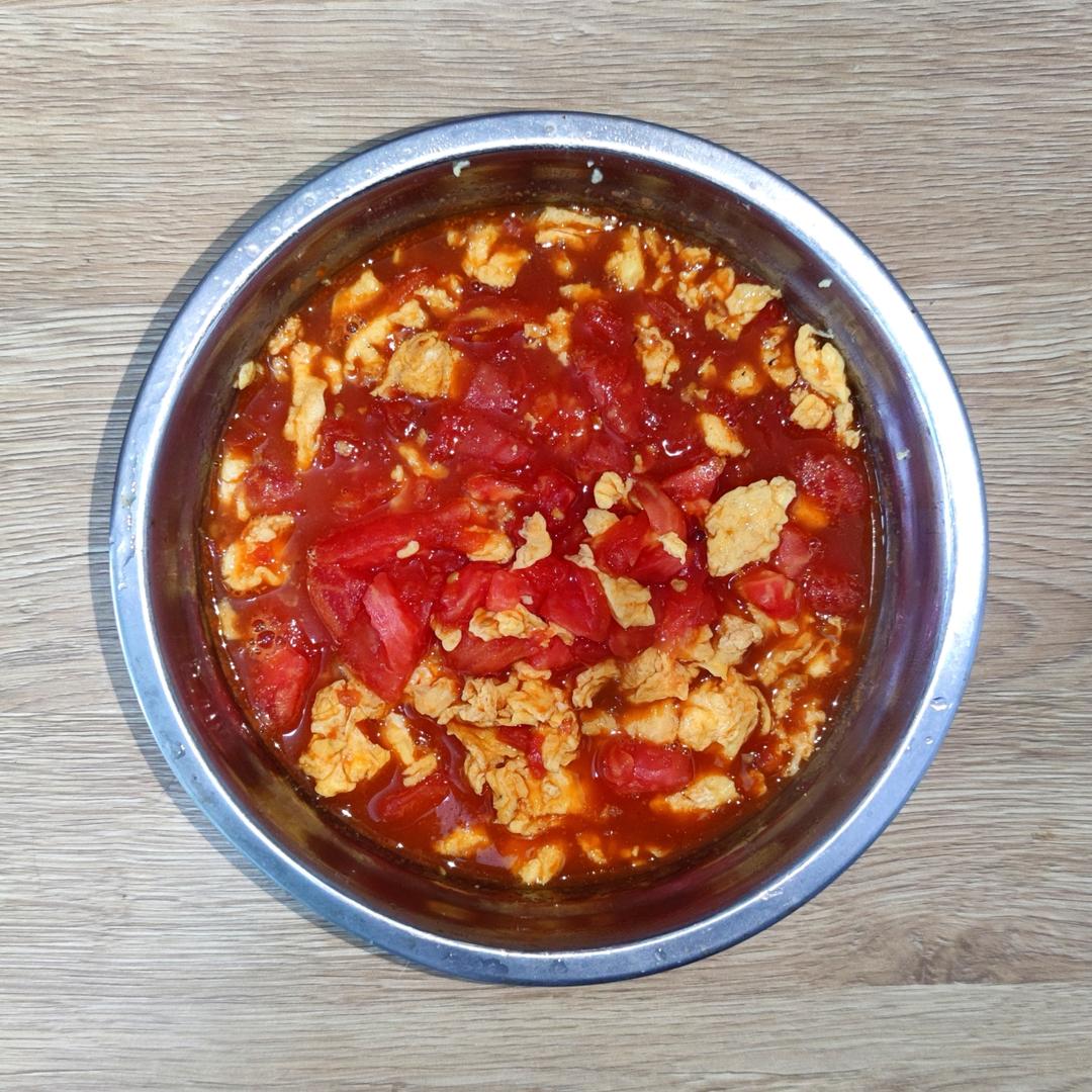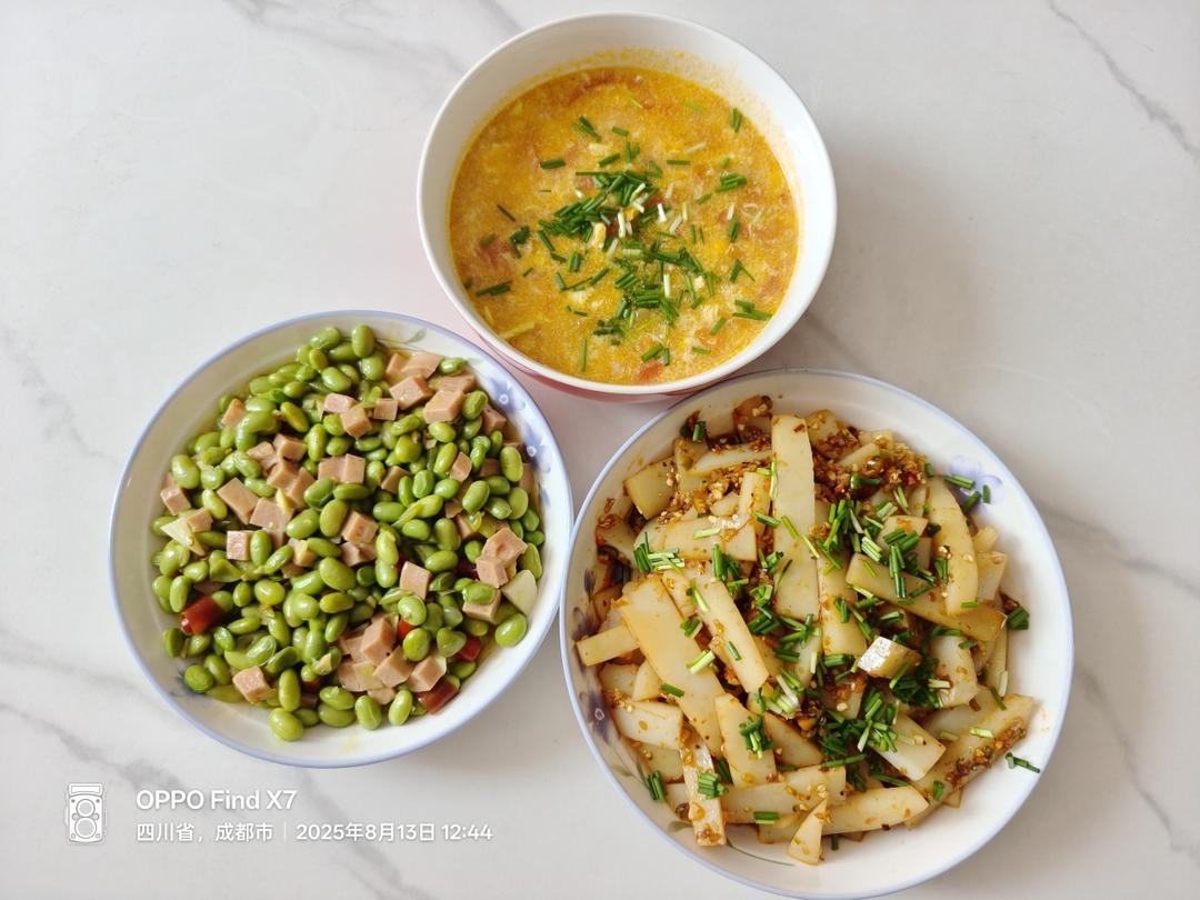 今日午餐:凉粉+火腿肠青豆+番茄蛋花汤