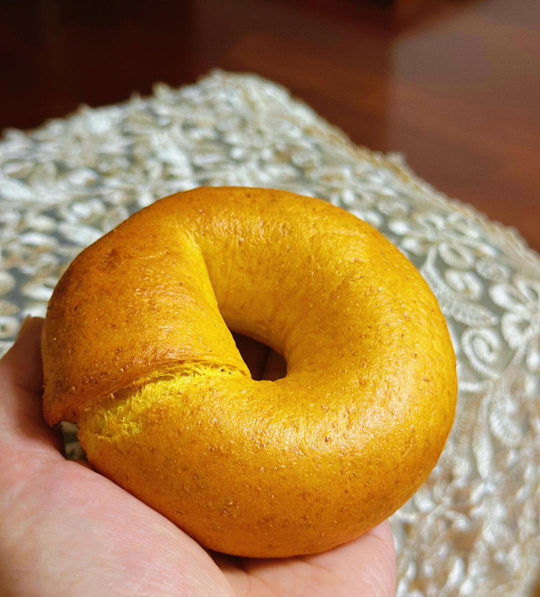 无糖无油南瓜贝果🥯~晚饭没吃主食,出炉就吃了一个,贼好吃😋