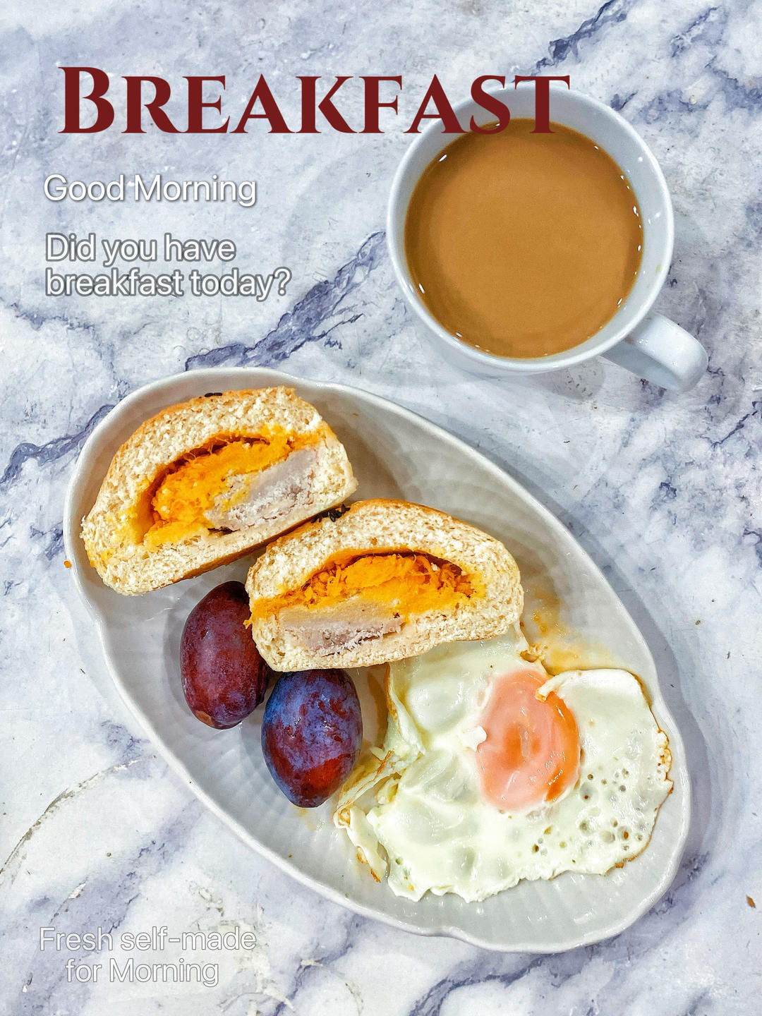 早:☕奶咖🍒🍳🥯芋泥肉松软欧包