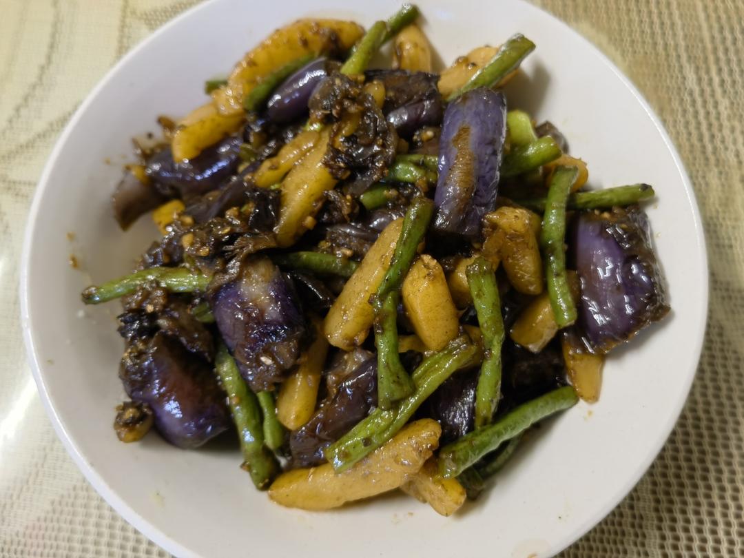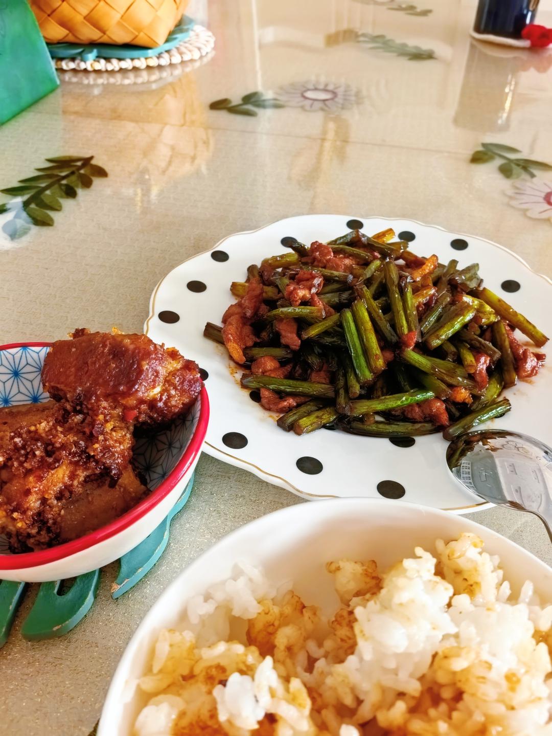 芸豆土豆炖排骨+炒大虾