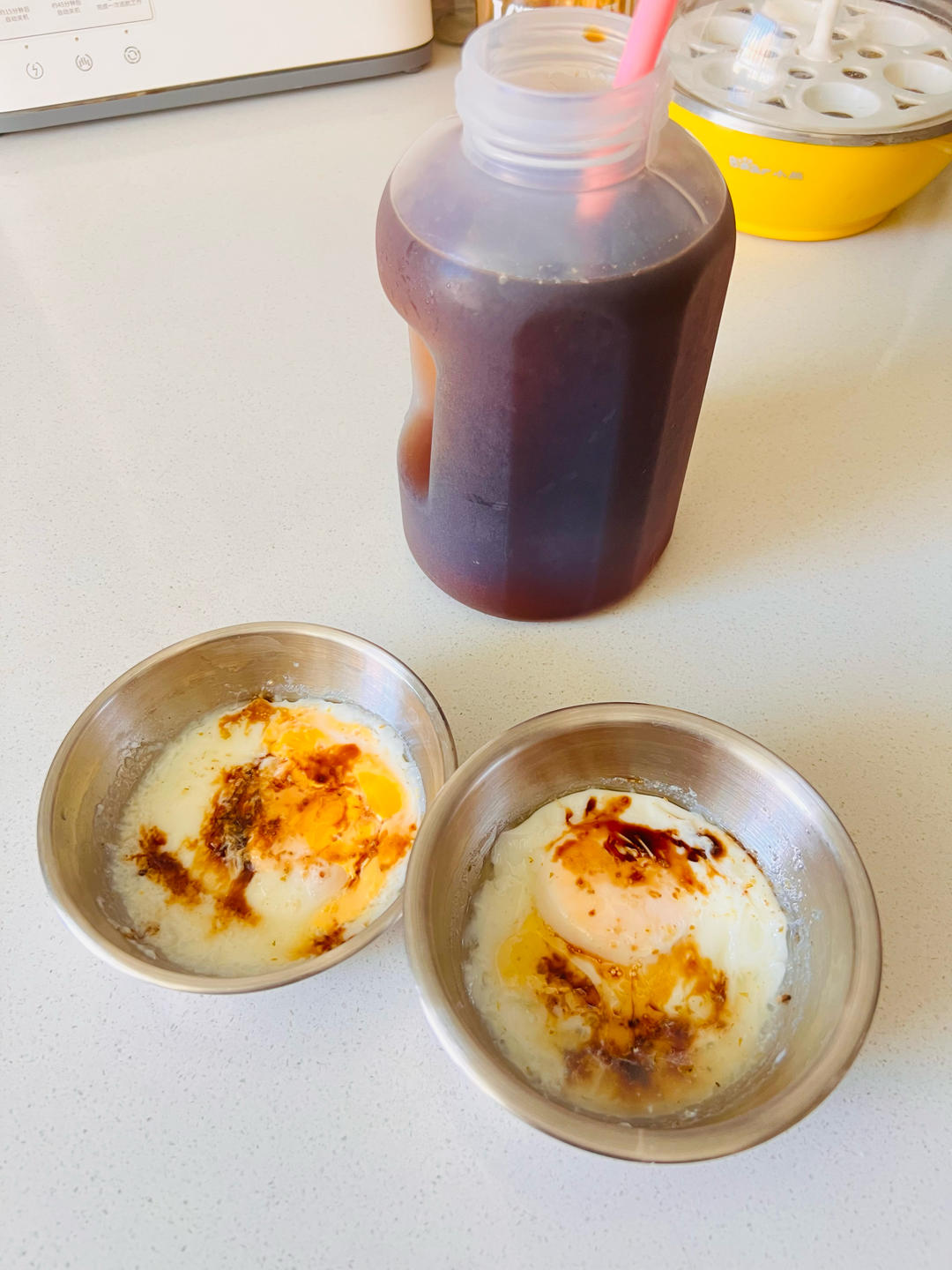 椰子水美式。蒸水荷包蛋