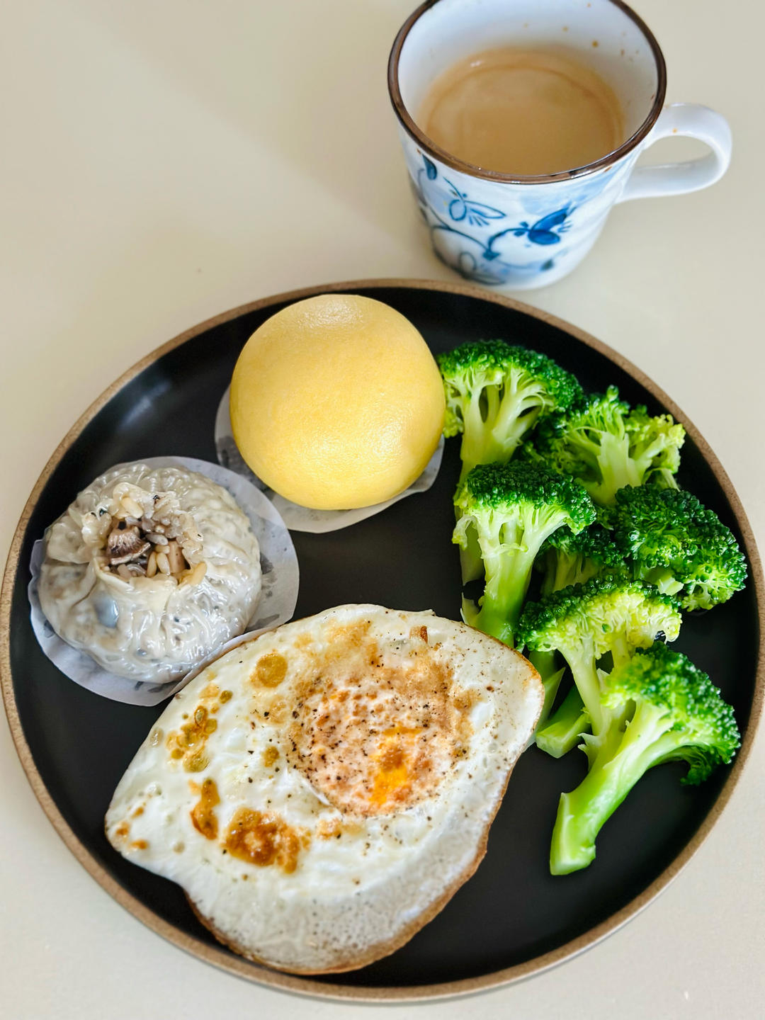 地瓜包+黑松露菌菇烧卖+煎蛋+西兰花