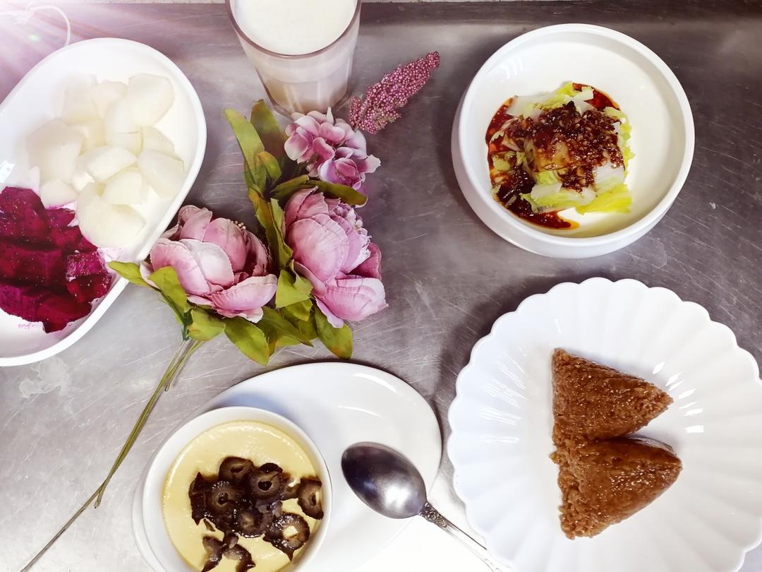 海参蒸蛋 肉粽 白灼白菜
