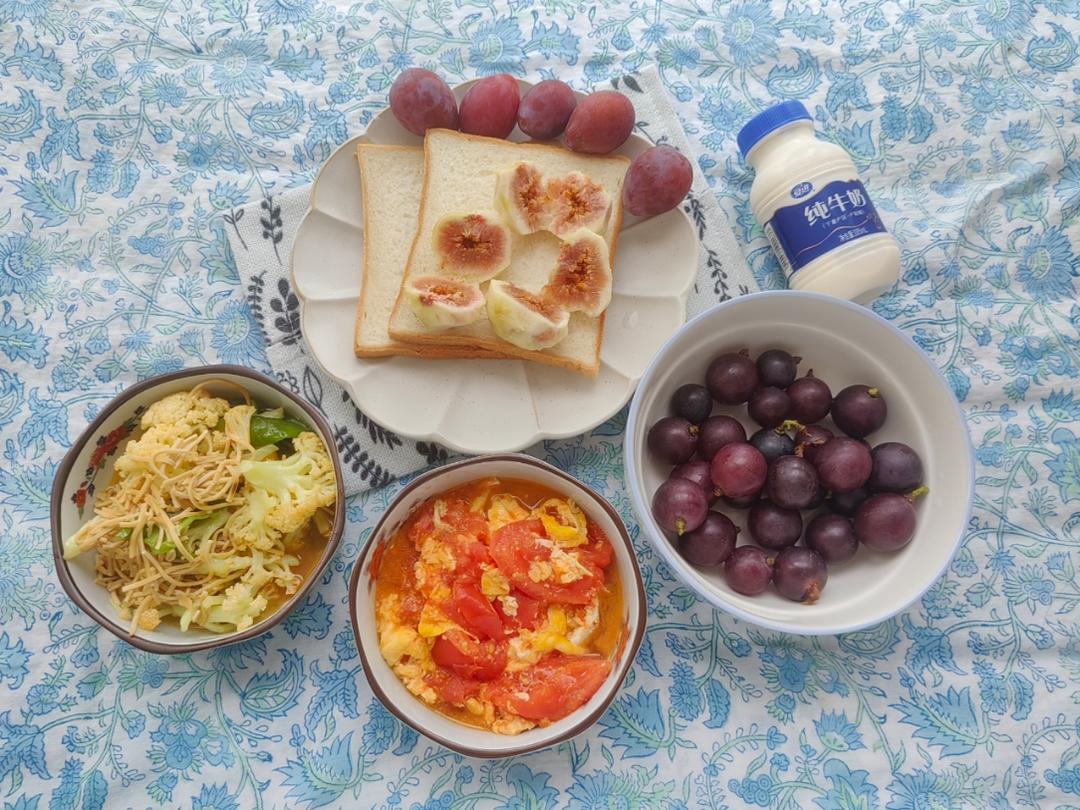 今日早餐~ 切片面包 无花果 西梅 葡萄🍇 ...