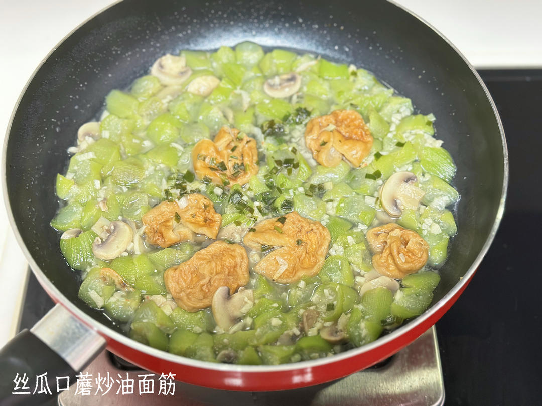 丝瓜口蘑炒油面筋