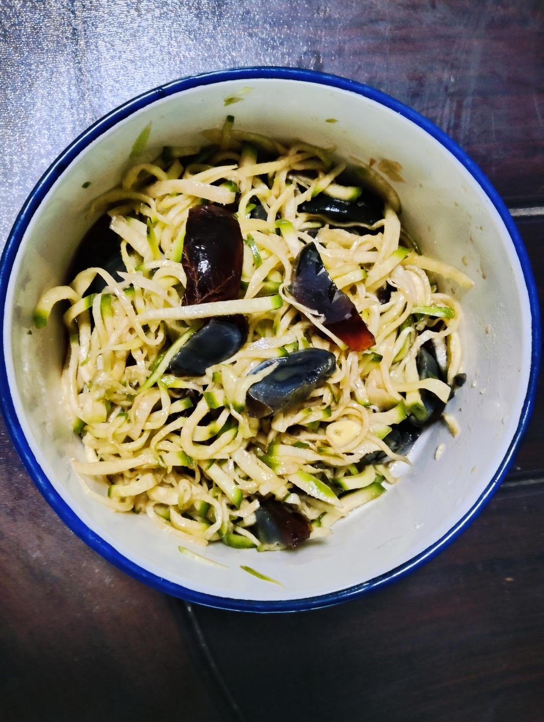 请萝卜丝拌皮蛋。