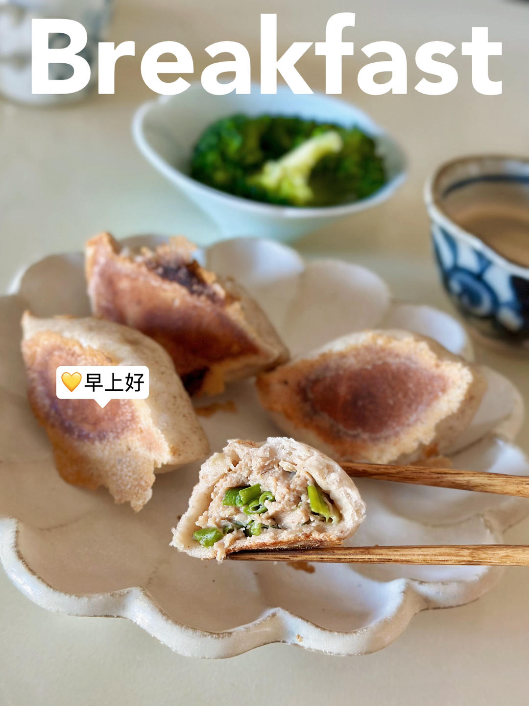 好吃的水煎包 西兰花 咖啡 够我完成40分钟有氧和臀腿训...