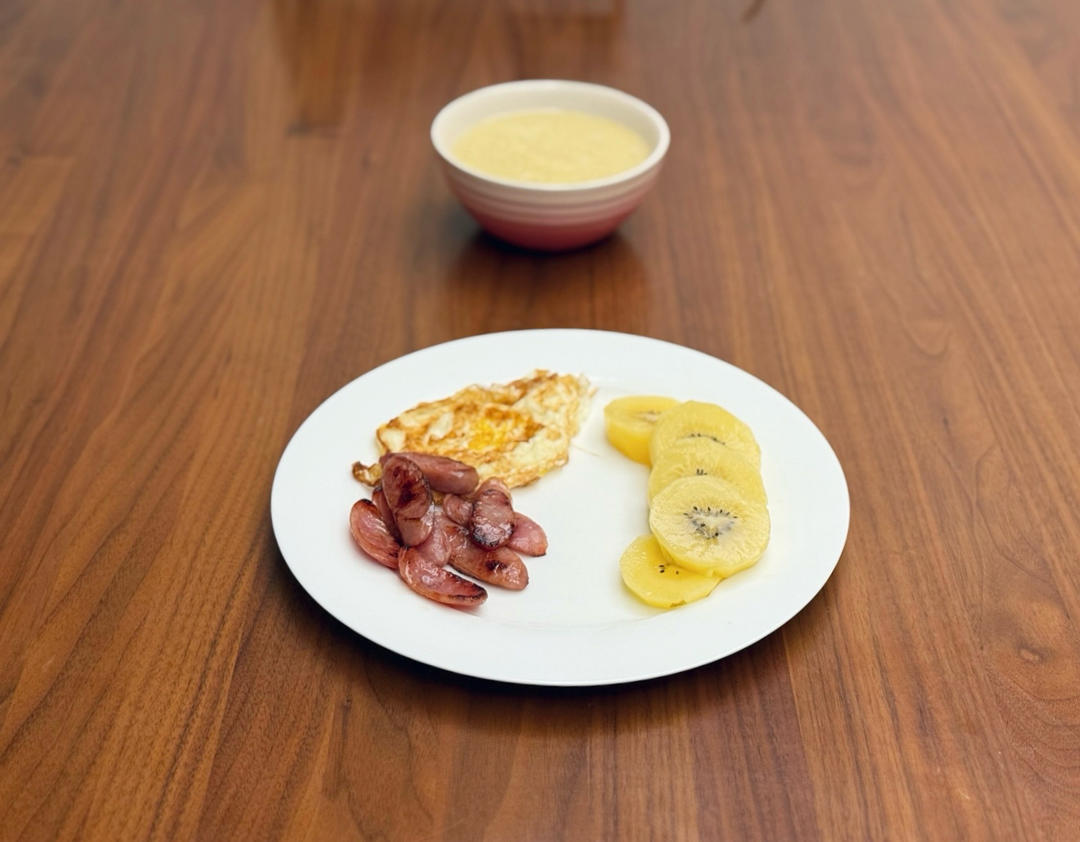 小米粥、煎蛋&台式香肠🥝
