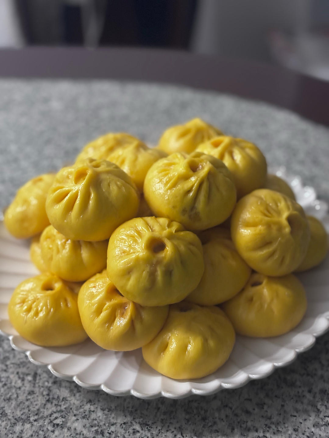 用胡萝卜泥和菠菜泥做的小笼包。