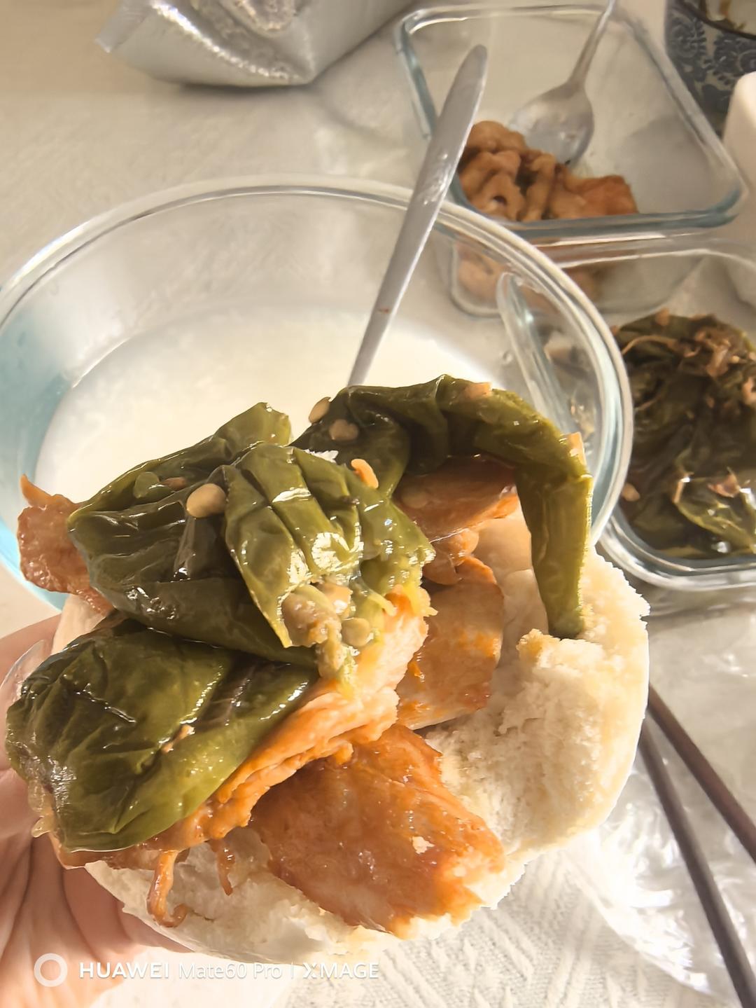 奥尔良鸡排馒头 大米稀饭 辣椒