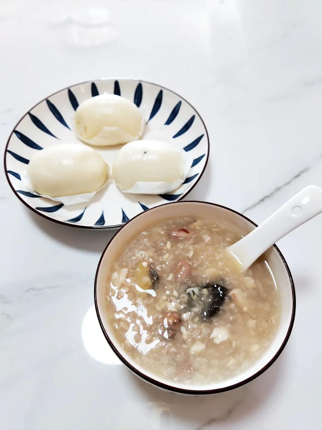 鲜香鱼蓉花生粥配红豆包子