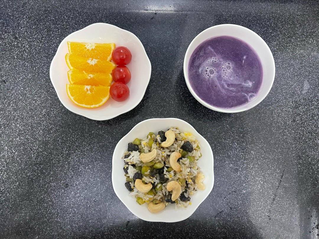 炒饭 紫薯燕麦奶 水果