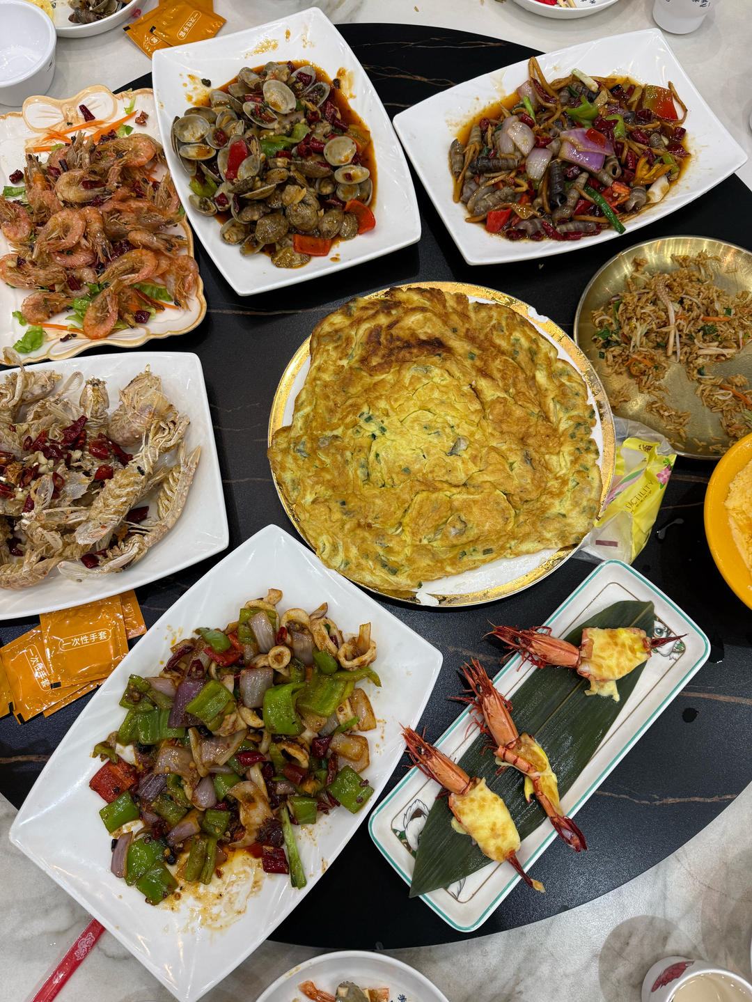 打卡北海越乡小厨,蝐蛎煎蛋,海鲜炒饭,椒盐皮皮虾,香草虾,芒果绵绵冰,麻辣火筒螺,麻辣花...