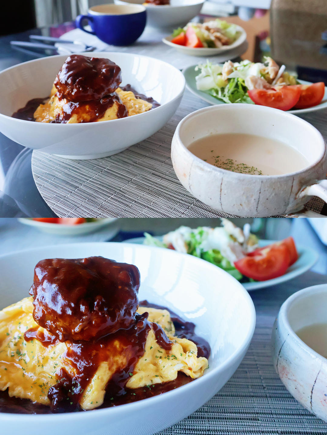 红烧汉堡牛排配日式煎蛋饭