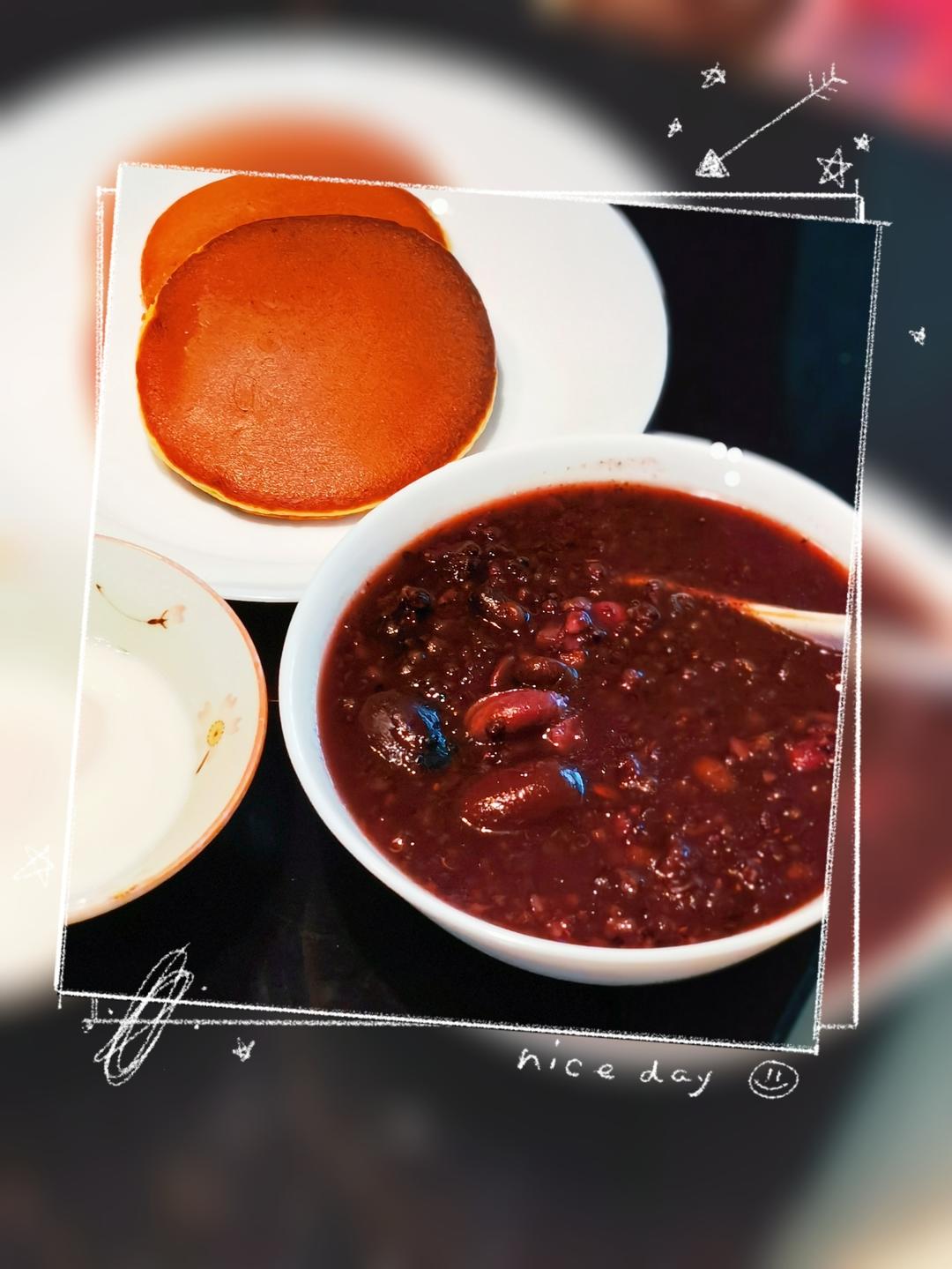 早餐吃春饼➕炒合菜➕小米山药红枣粥